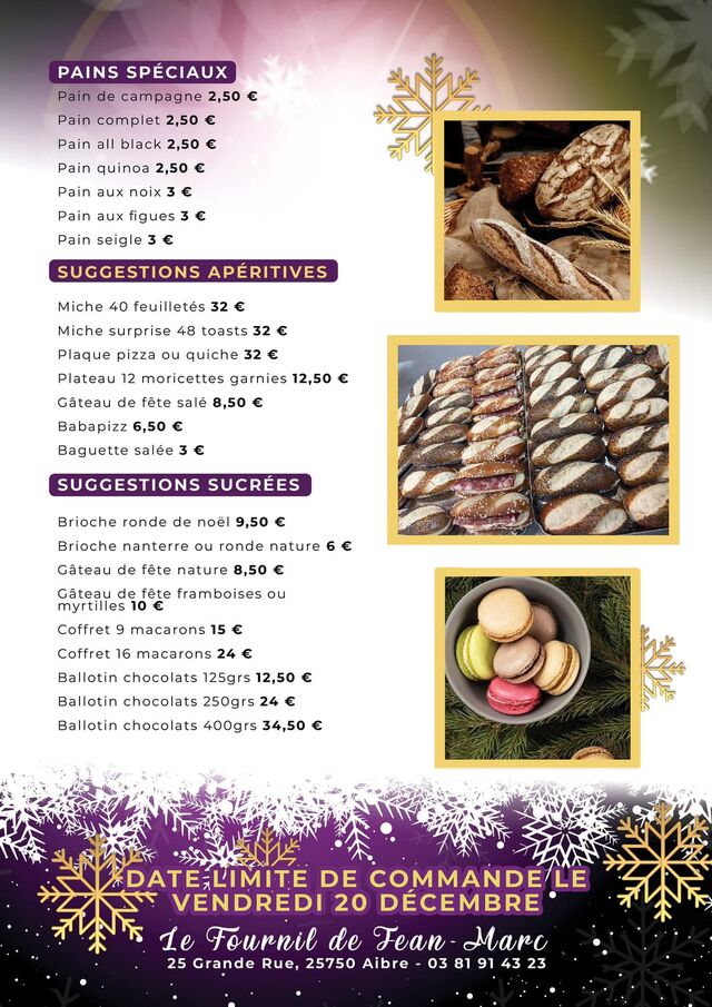 D’ailleurs, vous pouvez aussi venir chez nous en voiture ; nous avons un parking gratuit pour vous. Notre boulangerie est équipée pour accueillir les personnes à mobilité réduite. Nous serions heureux de valider votre réservation. Nous vous assurons un bon moment et une ambiance chaleureuse lors de votre visite. Nous sommes à votre disposition par téléphone en appelant le +33381914323. Nous acceptons les chèques, les paiements sans contact, la MasterCard, les tickets repas, la VISA, le Ticket Restaurant®, les cartes de débit, l’Apple Pay et la Maestro comme moyen de paiement. Il est en outre possible de payer en espèces. Vous pouvez également commander vos repas à emporter. Nous proposons également un service traiteur – pour plus d’informations, contactez-nous ! Nous sommes ouverts tous les jours sauf le lundi.